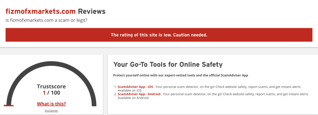 Scam Adiviser:https://www.scamadviser.com/check-website/fizmofxmarkets.com